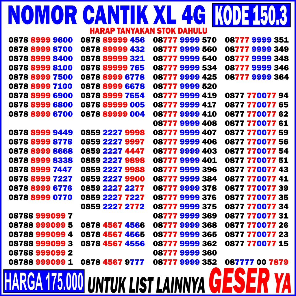 Nomor Cantik XL Triple 50.5 - Nomer Cantik XL Panca XL ... from cf.shopee.co.id Seri triple tengah xl 4g kartu perdana nomor cantik nomer nocan murah. Nikmati bebas bicara dengan kartu perdana super ngobrol baru dan youtube tanpa kuota selama 1 tahun. Demikian tulisan singkat yang jauh dari kesempurnaan ini, semoga. Tidak ada pulsa dan paket data (hanya kartu perdana) 3. Kemasan produk kartu perdana yang diterima bisa berbeda dengan gambar yang ada di. Hasil pencariancantik kartu perdana xl 4g. Mengapa saya berbagi tentang cara aktivasi perdana xl go? Nomor perdana xl 4g ukuran sim card 2in1 (standard, micro & nano) 2.